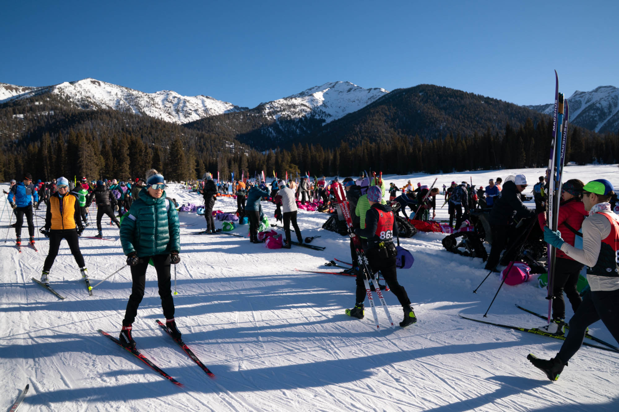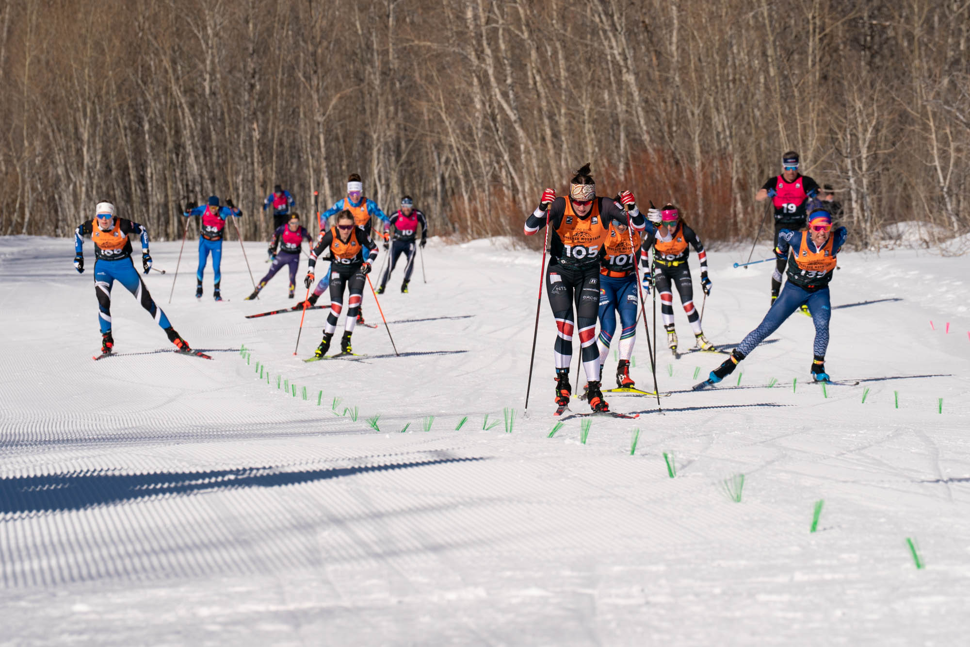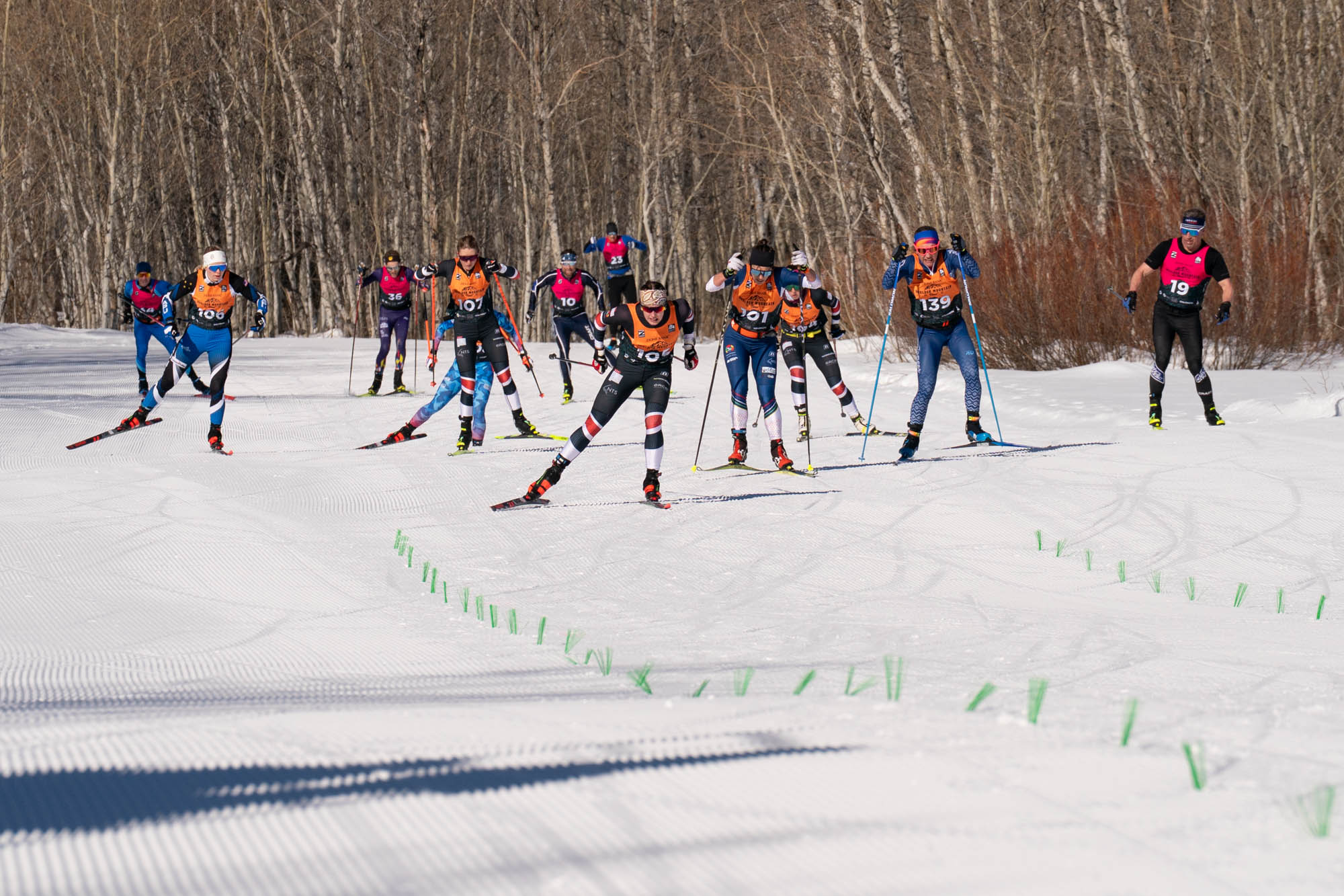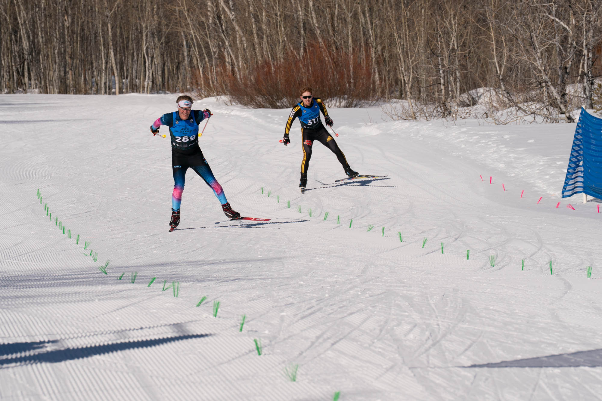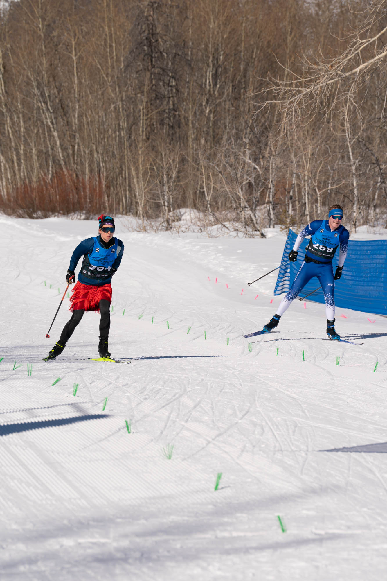 If it snows Saturday morning and then continues to snow during the race such that there is a hard base of snow with 1-2 inches of ungroomed snow on top, my recommendation is to go with a pair of skis that has a higher stiffer camber. Skis tend to run far better in such conditions when there is less contact of the snow on the base and this is the way to accomplish that. If these are the conditions, I expect flex of the skis (higher stiffer camber) to be the most important factor affecting ski speed.